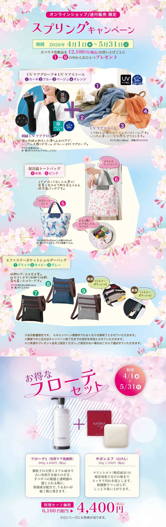 スプリングキャンペーン/フローテセット ◆フローテセットのご注文はこちら フローテAセット フローテGセット送付販売(電話・ファックス・ハガキでの注文)のキャンペーン期間は、4月1日(水)~5月29日(金)です。ご注意ください。 キャンペーン